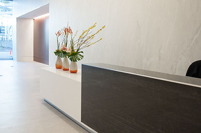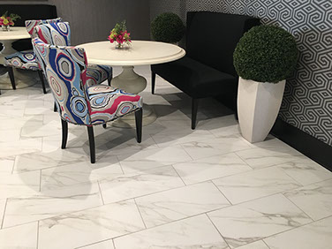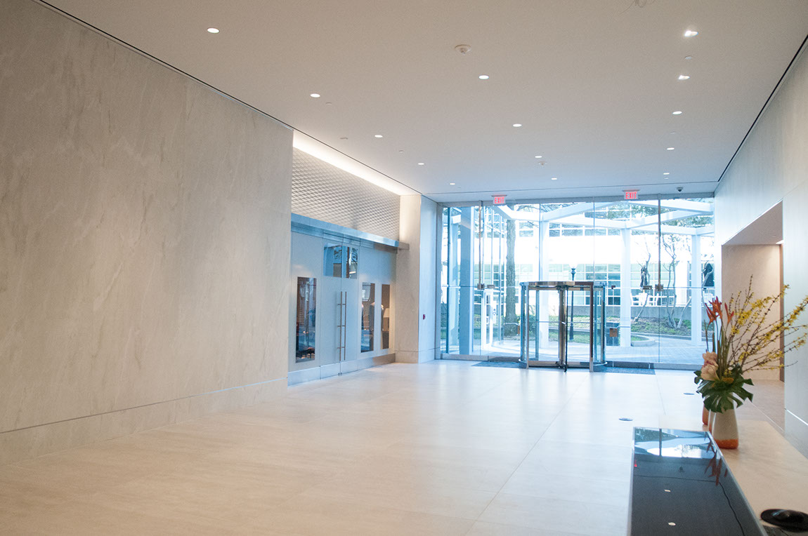LARGE PORCELAIN PANELS & TILE FLOOR - TOWER PLACE 100 LOBBY, BUCKHEAD - ATLANTA GA